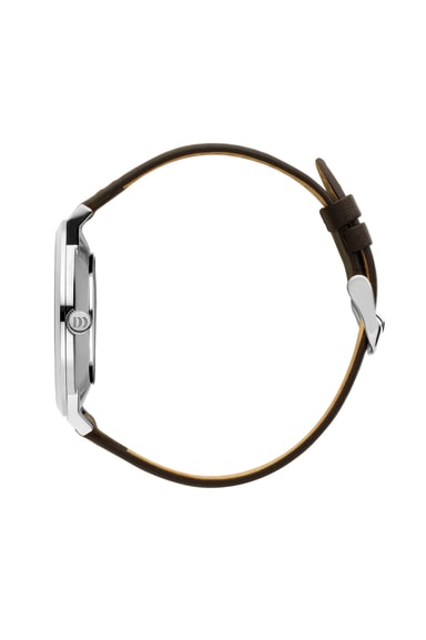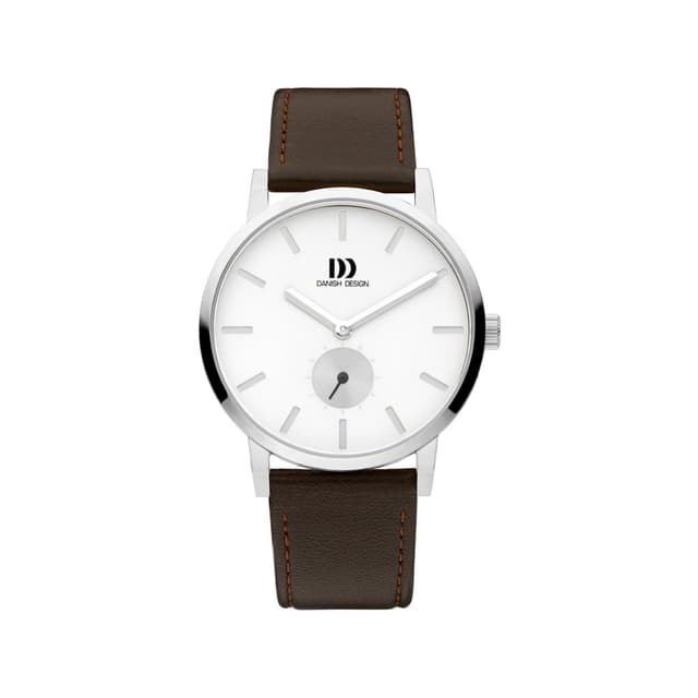 Denne klokken er hva danish design handler om, klassisk og enkel i design med vri. Klokken har en rustfri stålkasse med hvit urtavle, mineral krystallglas og en brun lær rem.