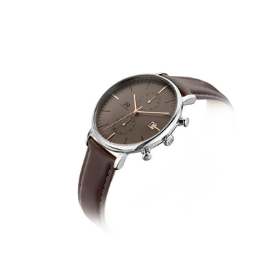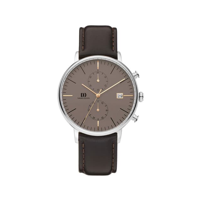 Få full kontroll over tid med dette mesterverket. Denne vakre kronografen fra danish design. Egenskaper en 42mm rustfri stålkasse med en brun urtavle, dato display, mineral krystallglas og en brun lær rem.