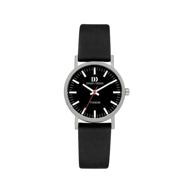 Med den matte titan kasse og klassiske look, gir denne klokken fra danish design din stil og antrekk et helt nytt utseende. Den har en svart urtavle, rød visere og en svart lær rem.
