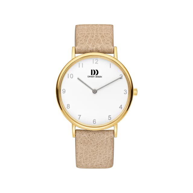 Med denne enkle og elegante klokken fra danish design kan du fullføre alle antrekk. Klokken har en rustfri stålkasse med hvit urtavle, mineral krystall glass og en brun lær rem.