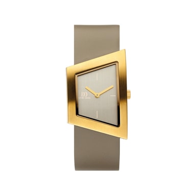 Med dette unikt designet urkasse får du en unik klokke. Denne danish design klokken har en firkantet gullfarget rustfri stålkasse med brun urtavle, mineral krystallglas og en brun lær rem.