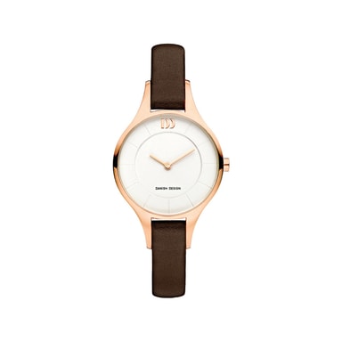 Denne enkle og stilfulle klokken fra danish design kan brukes til alle antrekk ved enhver anledning. Klokken har en rosegull farget rustfritt stålkasse med hvit urtavle, mineral krystall glass og en brun lær rem.