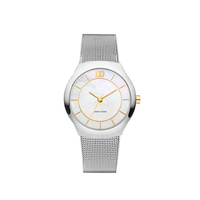 Du kan aldri gå galt ved å velge en helt klassisk klokke uten noen vilde detaljer eller farger. Denne klassiske klokken fra danish design har en gull farget rustfri stålkasse med hvit perlemor urtavle, mineral krystallglas og flettet rustfrit stål.