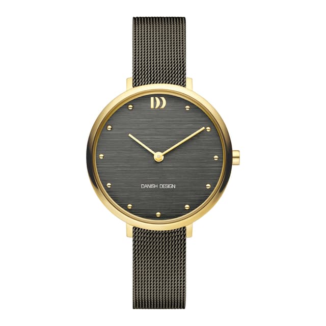 Klassisk og elegant, passer til alle håndledd og anledninger. Dette danish designuret har et gullfarget rustfritt stål med grås urtavle, mineral krystallglass og et rustfritt stålarmbånd i mesh. Kasse størrelse: 33mm. Vannmotstand: 3 atm.