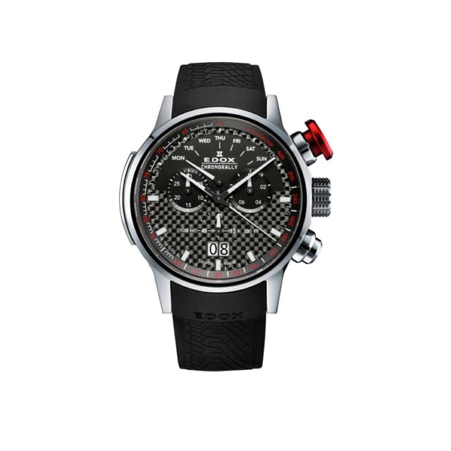 Egenskaper:edox krone og/eller pusher med dobbel o'ring, luminescent visere og/eller indekser, safir krystall, vanntett. Funksjoner:big date, chronograph. Material:titanium, gummi. Urverk:kvarts. Vanntett:100 meters – 10 atm