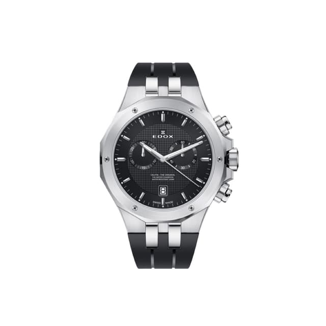Denne edox delfin kronografklokken har en 43 mm. Rustfritt stål etui. Klokken har en datovisning, safirkrystallglass, sveitsisk kvartsbevegelse og er vannavstøtende ned til 200 meter.