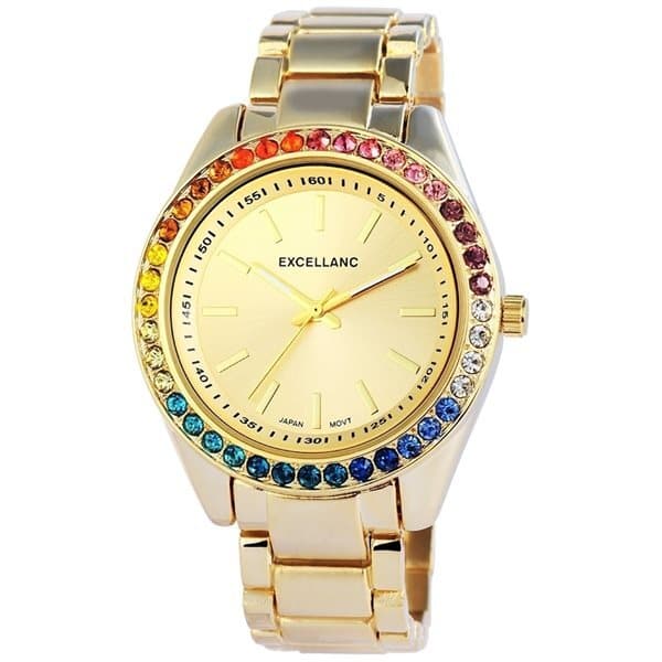 Analog dameklokke fra Excellanc som har et kvartsverk av høy kvalitet. Metallarmbåndet er 18 mm bredt og åpnes med en foldespenne i rustfritt stål. Total lengde er 17 cm. Metallhuset med mineralglass har dimensjonene 40 mm og 11 mm høyde. Klokken er forsterket med krystalldetaljer i deilig design.