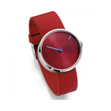 The curve series. Er en klar, dristig design med en enkelt stropp som løper fritt gjennom klokka. Det er ingen tall eller indekser: designet har rett og slett en roterende plate som angir minuttene, mens en hånd viser timene og en krone til siden justerer tiden. Som alltid bruker jacob jensen de fineste materialene som mineral krystallglass, som gir en subtil kuppel over klokkeflaten. Dette glasset er deretter innesluttet med et sirkulært rustfritt stål kasse innskrevet med jacob jensen-logoen.