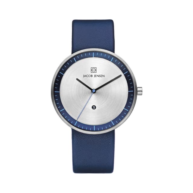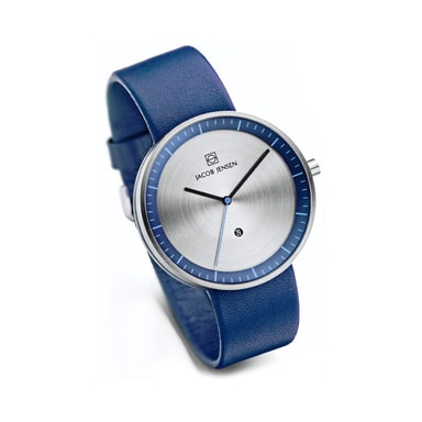 Den prisbelønte strata klokke-samlingen er designet for å imøtekomme fleksibiliteten i dagliglivet. Den lett byttbare lær rem er tydelig synlig på siden av kassen som gir klokken et særpreget estetisk uttrykk. Strata klokken kombinerer klassisk design, funksjonalitet og materialer av høy kvalitet, en ikonisk klokke laget av jacob jensen design studio.