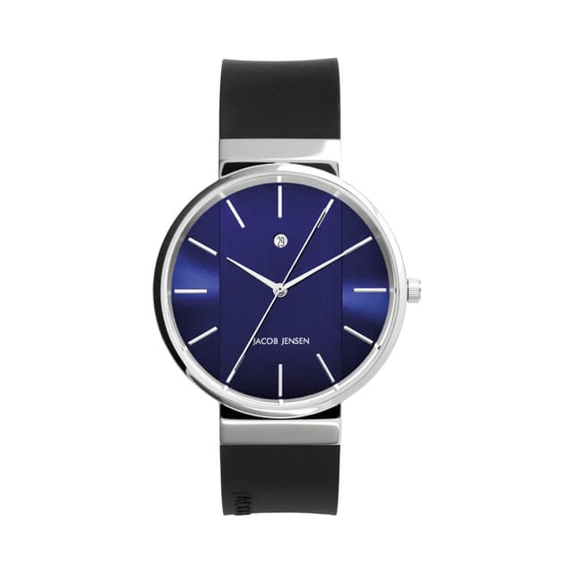 Utformingen av jacob jensen new series har blitt revidert tre ganger siden utgivelsen i 1995, noe som resulterte i noen subtile, men betydelige endringer i designen. Det indre på klokken har et vertikalt falt spor som utmerker sin tredimensjonale kvalitet. Det forsterker illusjonen av remmen som strømmer fritt rundt uret.