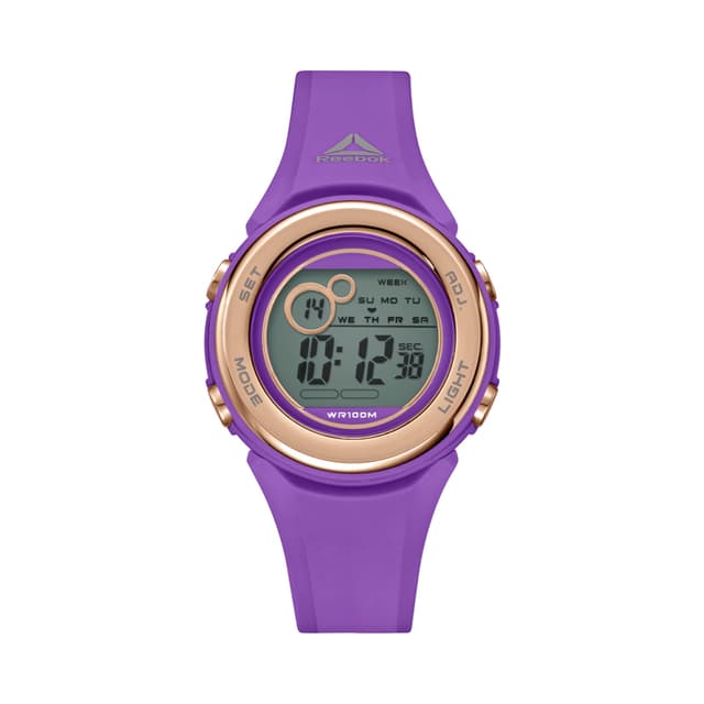 Dette reebok corral uret har en 36mm. Abs-sak og en plastrem. Klokken har tid, nedtelling, alarm, krono, timer, måned, dag og dato og er vanntett opp til 100 meter.