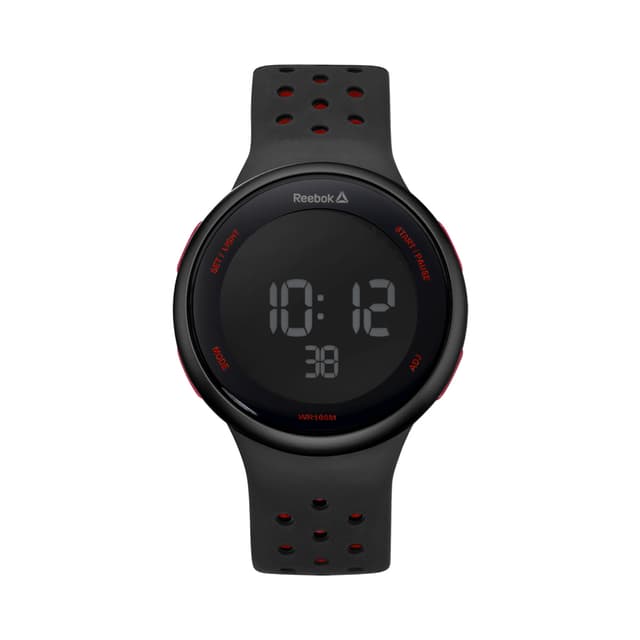 Dette reebok elements uret har en 43,5mm. Abs-etui og en silikonstropp. Klokken har tid, chrono, split / lap, alarm, timer, nedtelling og er vanntett opp til 100 meter.
