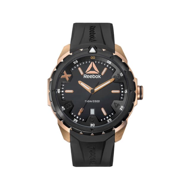 Reebok impact-klokken er laget av rustfritt stål. Det gir oppmerksomhet til detaljer inspirert av reebok delta-logoen. Den trekantede deltaformen er synlig i alle kroker og hjørner. Sakformen spiller med delta-formen, ved å bruke den særegne formen på sagens side, på knastene og på innrissede tenner på rammen. Silikonstroken i høy kvalitet er like inspirert av reebok delta. Impact-klokken, med sin vannmotstand opp til 10 atm, er den perfekte følgesvenn for den aktive mannen fra kontor til treningsstudio og fra jobb til å trene.