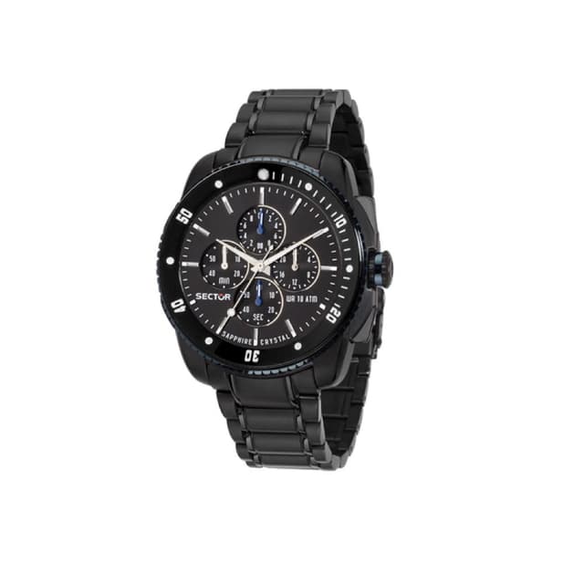 Materiale og finish: rustfritt stål, pvd, sak størrelse: 50,2x45mm, skivefarge: svart, krystall: safirkrystall, stropp materiale: metallarmbånd, stroppfarge: svart, bevegelse: kvarts, låsetype: distribusjonsspenne, vannavstøtende: 10 atm, garanti: sektor 2 års garanti, emballasje: sektor originalemballasje, batteribytte: ja