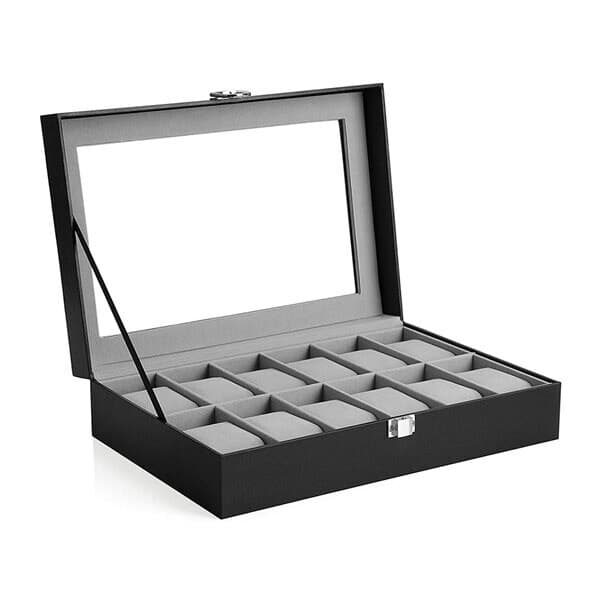 Urkasse til 12 klokker - med glasslokk og mykt fløyelsfôr