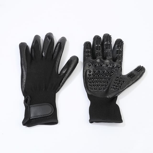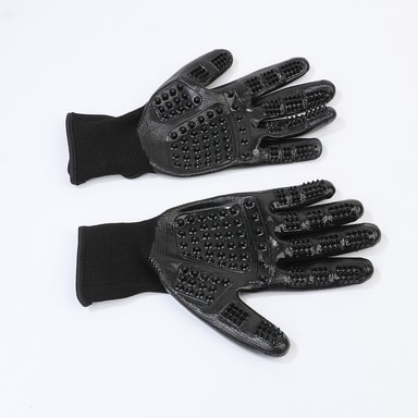 Effektiv rengjøring: Den unike designen til hanskene med gummibust fjerner effektivt skitt, løst hår og rusk fra kjæledyrets pels, og sikrer en grundig rengjøring.