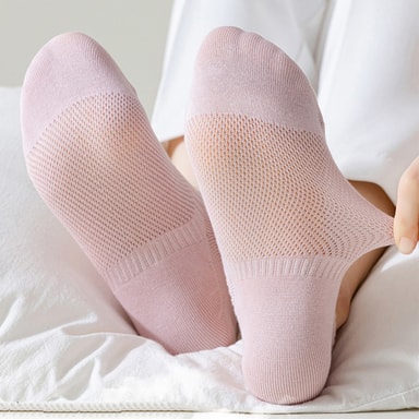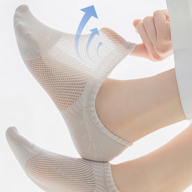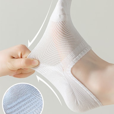Ultimat Komfort: Opplev uovertruffen komfort med disse usynlige damesokkene. Laget av myk, pustende bomull, sikrer disse tynne sokkene at føttene dine holder seg kjølige og tørre hele dagen, noe som gjør dem perfekte sommersokker. Det delikate stoffet klemmer føttene dine forsiktig og gir en behagelig, knapt merkbar følelse som du vil sette pris på enten du løper ærend eller slapper av hjemme. Nyt bevegelsesfriheten uten å ofre komfort.