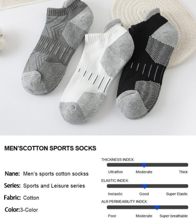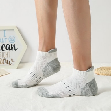 Anti-friksjonsdesign: Disse sokkene er designet med din komfort i tankene, og har forsterkede hæler og tær for å forhindre blemmer og gir en tettsittende, sikker passform. Nyt en friksjonsfri opplevelse, enten du løper ærend eller går på treningsstudio.