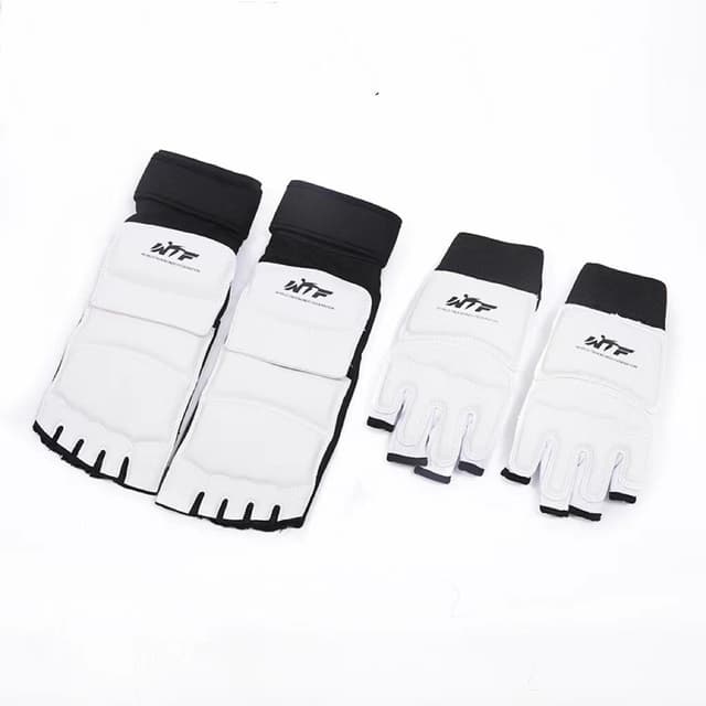 Vårt verneutstyr er laget av en kombinasjon av PU og myke svampmaterialer, og tilbyr både fleksibilitet og slagfasthet. Settet inkluderer et par fotbeskyttere for å skjerme føttene og leggen under intense sparringøkter, samt et par hansker for å beskytte hendene dine.