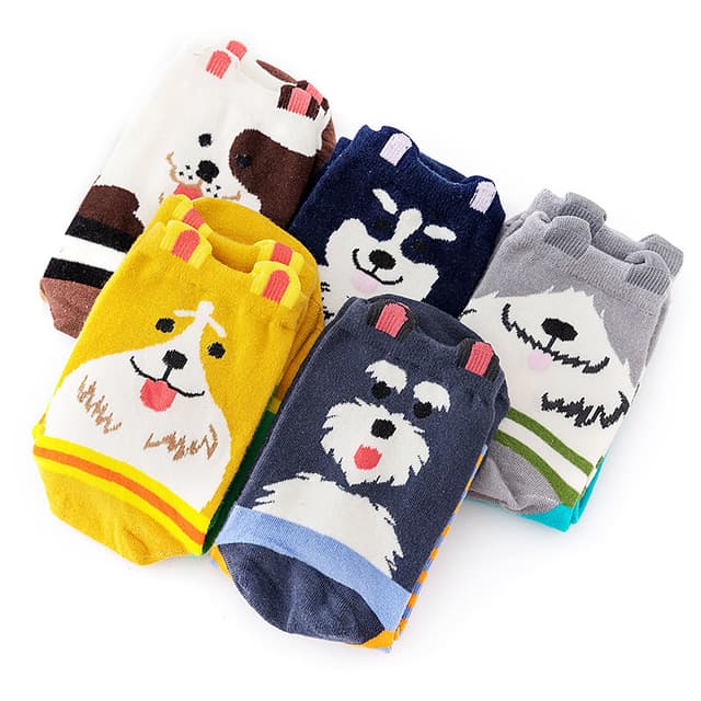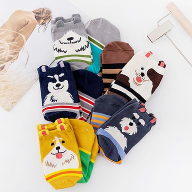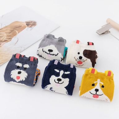 Fargerike søte dyredesignmønstrede fritidssokker i bomull 5-par 5-par Sokker med hundetrykk 1