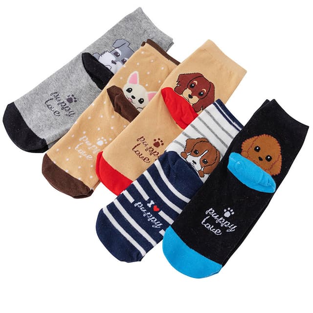 • Fargerike søte dyredesignmønstrede fritidssokker i bomull 5-par 5-par Sokker med hundetrykk 3