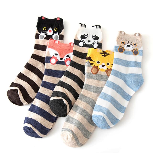 Fargerike søte dyredesignmønstrede fritidssokker i bomull 5-par 5-par Stripesokker 1