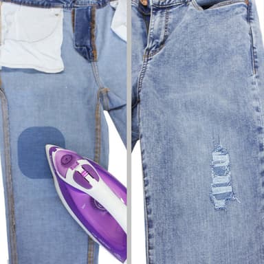 Reparasjonslapper laget av slitesterkt denimstoff i forskjellige blånyanser. Lapper som du kan stryke på det skadede området er en stilig, fleksibel og enkel løsning, hvor du slipper å sy. Stryk på med høy varme.Les mer om produktet