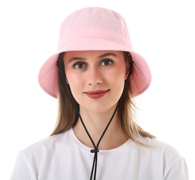 Denne solhatten er laget av taslon, som er superlett, hurtigtørkende, behagelig og ikke tett. Justerbar snøring for haken for å feste hatten, spesielt på vindfulle dager. Perfekt for utendørssport og aktiviteter.