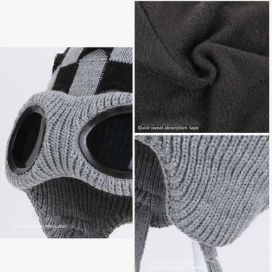 Integrated Goggle Design: Denne strikkede vinterluen har integrerte briller, som tilbyr både stil og funksjonalitet. Brillene gir ekstra beskyttelse mot vind, snø og gjenskinn fra solen, noe som gjør den ideell for ulike utendørsaktiviteter. Designet sikrer en sikker og komfortabel passform, og forhindrer at brillene sklir eller dugger. Enten du er i bakken eller løper ærender, gir disse integrerte brillene klart syn og forbedret beskyttelse. Kombinasjonen av en varm lue og funksjonelle briller gjør dette til et allsidig og praktisk tilbehør for ethvert vintereventyr. Brillene er designet for enkel fjerning og rengjøring, noe som sikrer langvarig ytelse.
