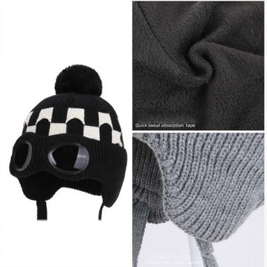 Integrated Goggle Design: Denne strikkede vinterluen har integrerte briller, som tilbyr både stil og funksjonalitet. Brillene gir ekstra beskyttelse mot vind, snø og gjenskinn fra solen, noe som gjør den ideell for ulike utendørsaktiviteter. Designet sikrer en sikker og komfortabel passform, og forhindrer at brillene sklir eller dugger. Enten du er i bakken eller løper ærender, gir disse integrerte brillene klart syn og forbedret beskyttelse. Kombinasjonen av en varm lue og funksjonelle briller gjør dette til et allsidig og praktisk tilbehør for ethvert vintereventyr. Brillene er designet for enkel fjerning og rengjøring, noe som sikrer langvarig ytelse.