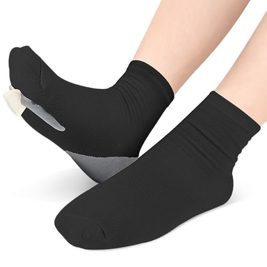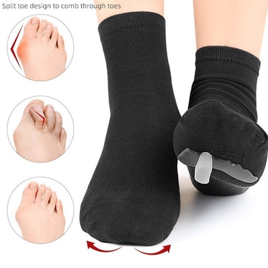 Umiddelbar smertelindring: Opplev umiddelbar lindring fra hallux valgus-smerter med disse gel tåseparator sokkene. Den integrerte gelputen demper hallux valgus-området, reduserer friksjon og trykk. Disse sokkene er designet for å lindre ubehag forårsaket av hallux valgus, og overlappende tær, slik at du kan gå, løpe og stå med større letthet. Den målrettede støtten bidrar til å rette opp stortåen, fremmer naturlig fotstilling og reduserer betennelse. Ideell for daglig bruk, gir disse sokkene kontinuerlig komfort og støtte, og hjelper deg med å håndtere hallux valgus-smerter effektivt og forbedre din generelle fothelse. De er perfekte for personer som søker en ikke-invasiv løsning på hallux valgus-ubehag.