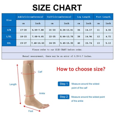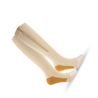 Praktisk glidelåsdesign: Med glidelås av høy kvalitet er disse kompresjonssokkene enkle å ta på og av, noe som gjør dem ideelle for personer med mobilitetsproblemer eller de som synes det er vanskelig å håndtere tradisjonelle kompresjonssokker.