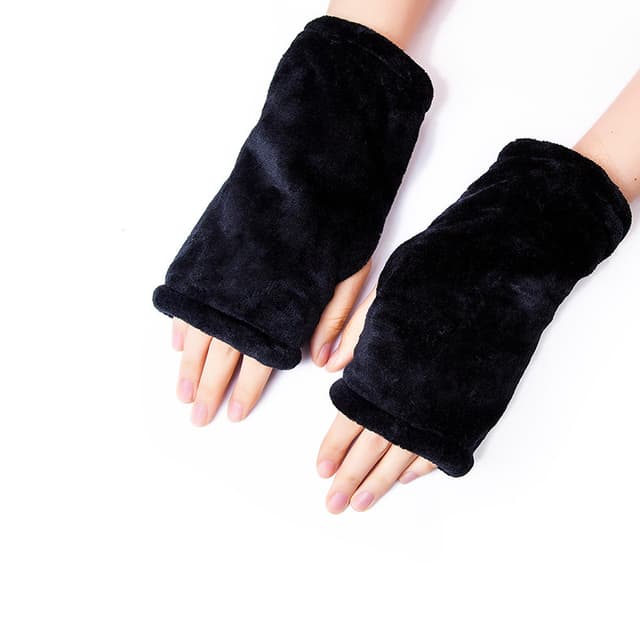 Plysj flanellstoff: Disse hanskene er laget av høykvalitets flanell, og gir en luksuriøs følelse som er myk og behagelig. Stoffets varme og hygge gjør disse halvfingerhanskene til det perfekte tilbehøret for både stil og praktisk.