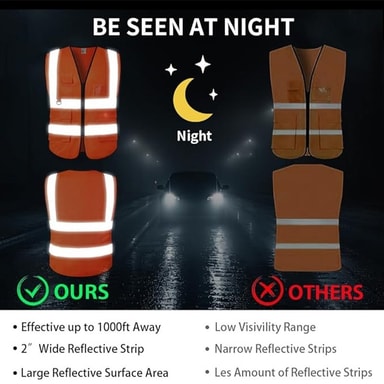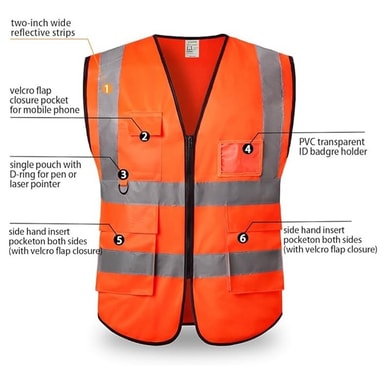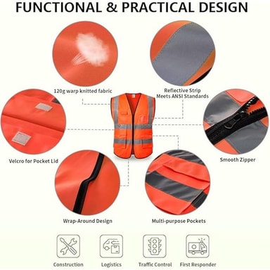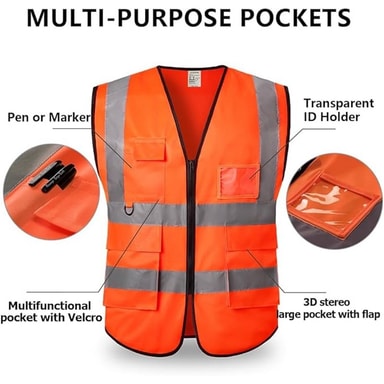 Forbedret synlighet: Hold deg trygg og synlig under dårlige lysforhold med vår refleksvest med høy synlighet. Den lyse oransje fargen og de strategisk plasserte refleksstripene sikrer maksimal synlighet, noe som reduserer risikoen for ulykker. Ideell for bygningsarbeidere, veivedlikeholdsmannskaper, trafikkpoliti og alle som jobber i farlige miljøer. Denne vesten gir 360-graders synlighet, noe som gjør deg lett synlig fra alle vinkler, selv under vanskelige værforhold. Refleksmaterialet er designet for å reflektere lys tilbake til kilden, og varsler sjåfører og andre arbeidere om din tilstedeværelse. Dette er et avgjørende sikkerhetstiltak for alle som jobber i nærheten av kjøretøy i bevegelse eller i områder med begrenset sikt.