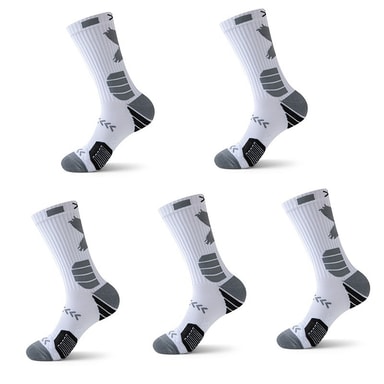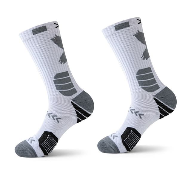 Forbedret støtdemping: Opplev overlegen komfort og beskyttelse med disse høye basketballsokkene med en tykk, polstret såle. Den strategisk plasserte dempingen absorberer støt under intense aktiviteter som løping og basketball, og reduserer belastningen på føttene og leddene. Ideell for idrettsutøvere som søker forbedret ytelse og skadeforebygging, disse sokkene gir støtten du trenger for å flytte grensene dine. Den tykke dempingen bidrar også til å forhindre blemmer og hard hud, og sikrer en komfortabel passform selv under lengre bruk. Disse sokkene er kompatible med ulike sportssko og joggesko.
