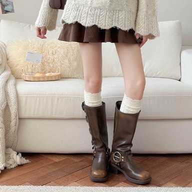Allsidig og funksjonell: Disse leggsokkene er ikke bare stilige, men også utrolig allsidige og funksjonelle. Det elastiske stoffet sikrer en tettsittende og komfortabel passform for et bredt spekter av leggstørrelser. Bruk dem over kneet for ekstra varme og stil, eller rynk dem ned for et mer avslappet utseende. Disse sokkene er perfekte for å kombinere med støvler, skjørt, kjoler eller til og med leggings. Den pustende strikkekonstruksjonen bidrar til å holde føttene tørre og komfortable, selv under lengre bruk. Nyt allsidigheten og funksjonaliteten til disse leggsokkene du bare må ha.