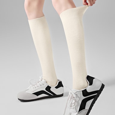• Kremete hvite knehøye sokker - pustende og tettsittende