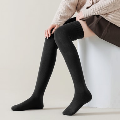 Over-the-knee-design: Disse sokkene er designet for å nå utover kneet, og tilbyr utvidet dekning for ekstra varme. Perfekt for sammenkobling med skjørt, kjoler eller lagt over leggings, de gir en stilig touch til vintergarderoben din.