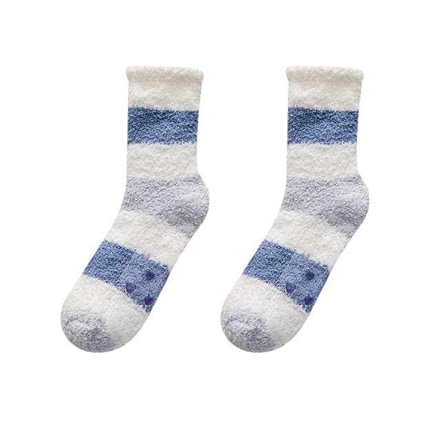 Sokkene våre med fleecefôr er laget av polyester og frotté, fortykket og luftig, noe som vil gi deg maksimal komfort, varme og hygge. Unik silikonbunndesign, sklisikker og trygg å ha på.