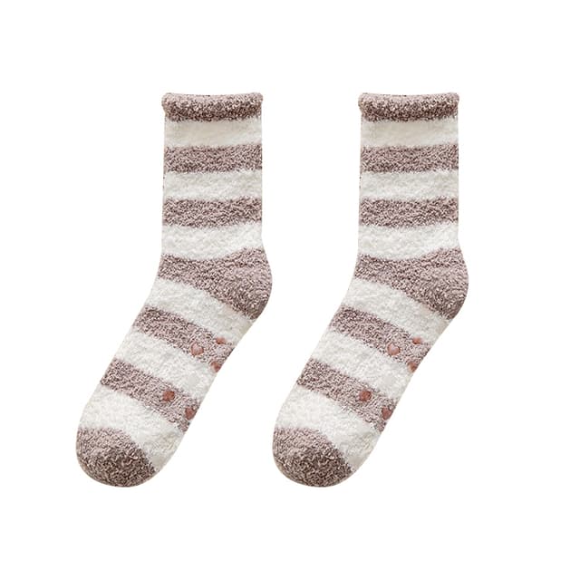 Sokkene våre med fleecefôr er laget av polyester og frottéstoff, fortykket og luftig, noe som vil gi deg maksimal komfort, varme og hygge. Unik silikonbunndesign, sklisikker og trygg å ha på.