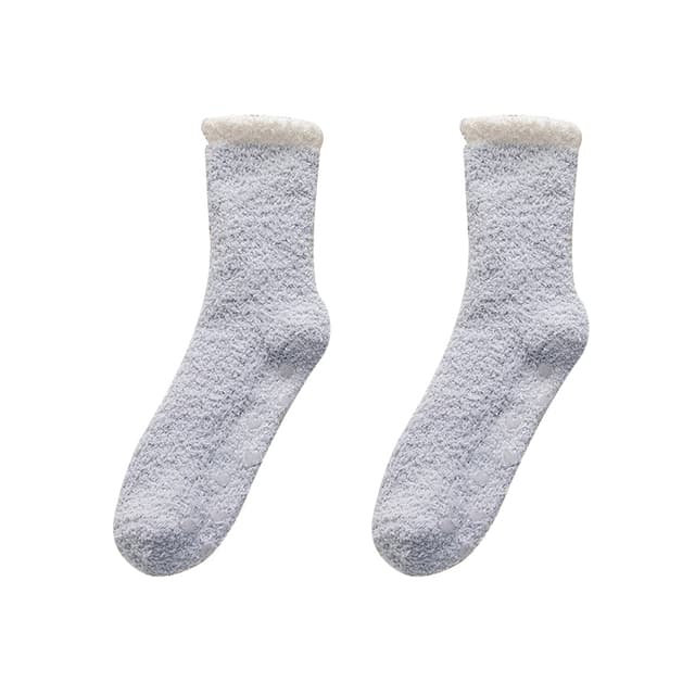 Sokkene våre med fleecefôr er laget av polyester og frotté, fortykket og luftig, noe som vil gi deg maksimal komfort, varme og hygge. Unik silikonbunndesign, sklisikker og trygg å ha på.