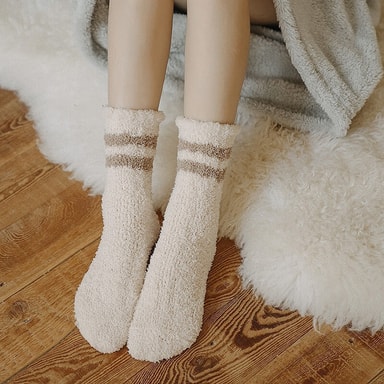 Sokkene våre med fleecefôr er laget av førsteklasses polyester og korallfleece, fortykket og luftig, noe som vil gi deg maksimal komfort, varme og hygge.