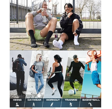 Skyddande design: Skydda dina fötter från stötar och friktion med dessa specialiserade basketstrumpor. Med riktad dämpning i områden med hög påverkan, såsom hälen och framfoten, ger dessa strumpor exceptionell stötdämpning. Den halkfria designen förbättrar greppet och stabiliteten, vilket minskar risken för stukningar och andra skador. Den förstärkta konstruktionen säkerställer långvarig användning, även under de mest krävande förhållanden. Investera i din säkerhet och prestanda med dessa skyddande strumpor.