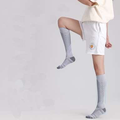 Muskelstøtte: Disse kompresjonssokkene er designet for å redusere muskeltretthet, forhindre kramper og gi støtte, og bidrar til å minimere risikoen for skader som forstuinger og strekk under fysiske aktiviteter.