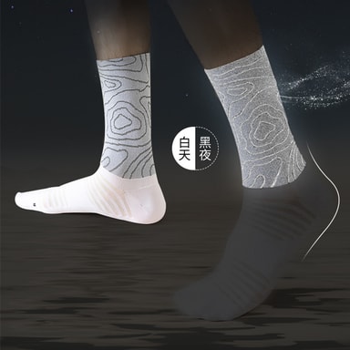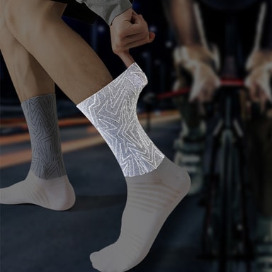 Forbedret synlighet: Disse sykkelsokkene har reflekterende garn vevd direkte inn i stoffet, noe som øker synligheten din betydelig under forhold med lite lys. Dette ekstra sikkerhetstiltaket hjelper deg å skille deg ut for bilister og andre syklister, spesielt under daggry, skumring eller om natten.