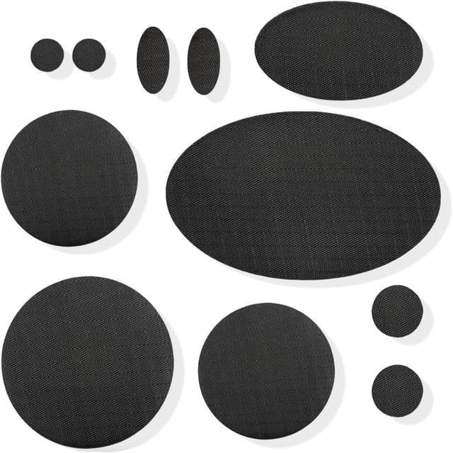Mange forskjellige størrelser: Med 11 forskjellige størrelser i hver pakke har du riktig klistremerke for ulike reparasjonsbehov, fra små hull til større rifter.