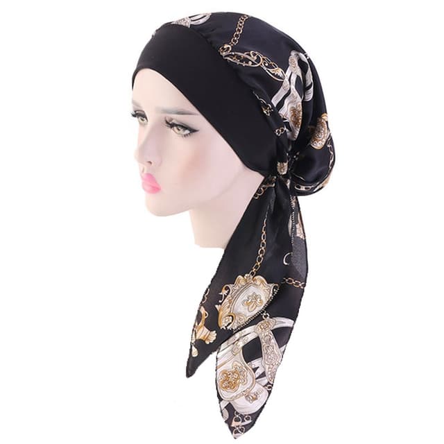 Silkeaktig hodeplagg med elastisk bånd, perfekt for solbeskyttelse, pusteevne og vindbeskyttelse. Kan brukes som piratlue, hårbånd eller flettet lue. Tilgjengelig i flere farger og mønstre.Les mer om produktet