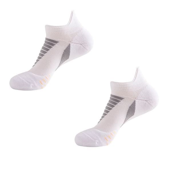 Polstret støtte: Nyt ekstra komfort og beskyttelse med våre polstrede løpesokker. Den fortykkede frottébunnen gir ekstra polstring og støtdemping, reduserer støt og forhindrer tretthet i føttene. Disse sokkene er perfekte for aktiviteter med høy belastning, og tilbyr overlegen støtte og demping der du trenger det mest. Enten du løper, jogger eller driver med cross-training, vil disse sokkene holde føttene dine komfortable og beskyttede, slik at du kan flytte grensene dine uten ubehag. Polstringen er kompatibel med ortoser for forbedret støtte.