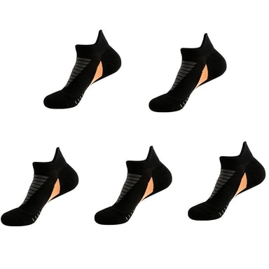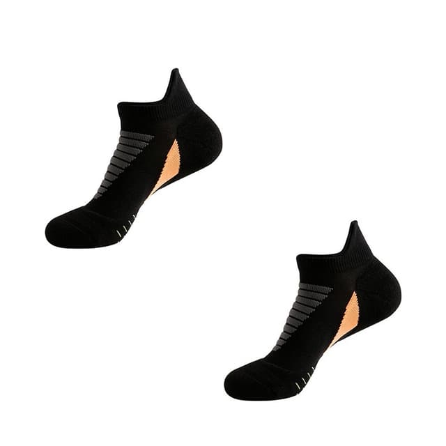 Polstret støtte: Nyt ekstra komfort og beskyttelse med våre polstrede løpesokker. Den fortykkede frottébunnen gir ekstra polstring og støtdemping, reduserer støt og forhindrer tretthet i føttene. Disse sokkene er perfekte for aktiviteter med høy belastning, og tilbyr overlegen støtte og demping der du trenger det mest. Enten du løper, jogger eller driver med cross-training, vil disse sokkene holde føttene dine komfortable og beskyttede, slik at du kan flytte grensene dine uten ubehag. Polstringen er kompatibel med ortoser for forbedret støtte.