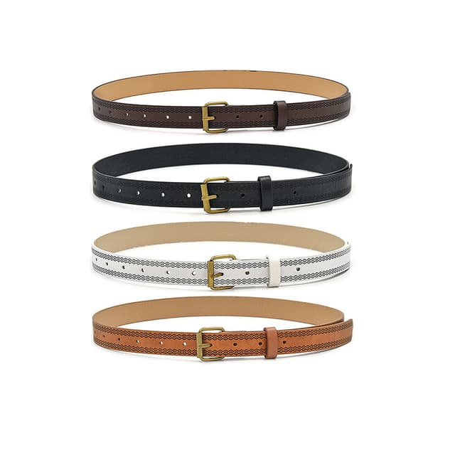 Førsteklasses kvalitet: Disse beltene er laget av høykvalitets PU-skinn og en slitesterk sinklegeringsspenne. Det glatte, fleksible materialet sikrer en behagelig passform, mens den solide spennen gir en sikker og pålitelig lukking.